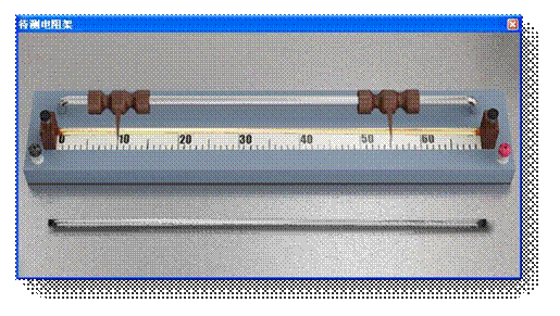 2.双击打开待测电阻架的界面,将铜棒拖入测试架上。并调节滑块间距离为50cm。