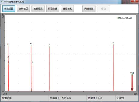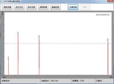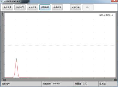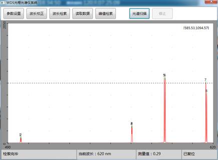 6)波长检索完成后,为保证扫描质量,先将参数设置中扫描速度改为很慢;点击光谱扫描按钮,光谱仪开始扫描;