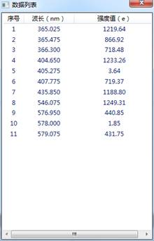 8)击波长校正按钮,弹出波长线性校正对话框,用数据列表中波长值减去理论值435.84nm,将结果记录到当前波长偏差值,点击确定按钮,完成单色仪定标;