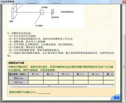 成功进入实验场景窗体,默认进入 “光栅单色仪的定标及汞灯光谱线测量”实验,实验场景的主窗体如下图组所示: