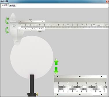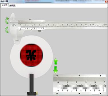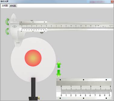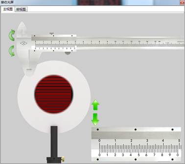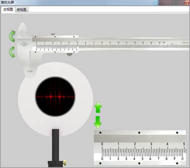 d)移动光屏上的游标卡尺(参见游标卡尺的功能介绍),测量光屏上的光栅衍射图案的±1级光斑和±2级光斑的距离。