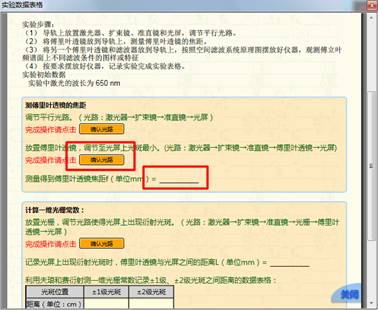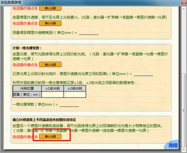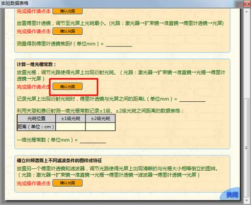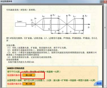 c)打开数据表格窗口,点击测量傅里叶焦距的“确认光路”按钮(下图红色方框内按钮)保存当前光路状态。