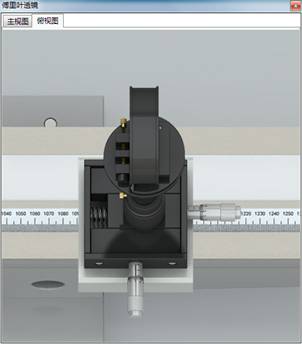 d)双击主场景中导轨上的傅里叶透镜和光屏,查看仪器俯视图,读出仪器在导轨上的位置,计算仪器之间的距离并填入到数据表格中。