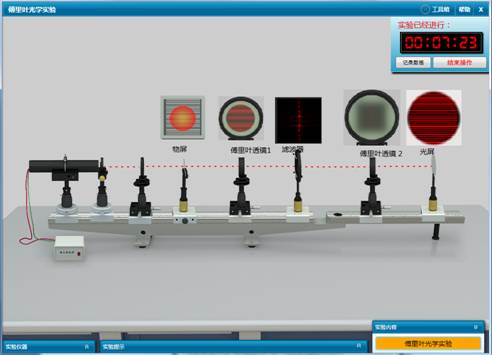 实验仪器栏:存放实验所需的仪器,可以点击其中的仪器拖放至桌面,鼠标触及到仪器,实验仪器栏会显示仪器的相关信息;仪器使用完后,则不允许拖动仪器栏中的仪器了。