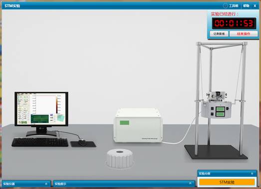 实验仪器栏:存放实验所需的仪器,可以点击其中的仪器拖放至桌面,鼠标触及到仪器,实验仪器栏会显示仪器的相关信息;仪器使用完后,则不允许拖动仪器栏中的仪器了。